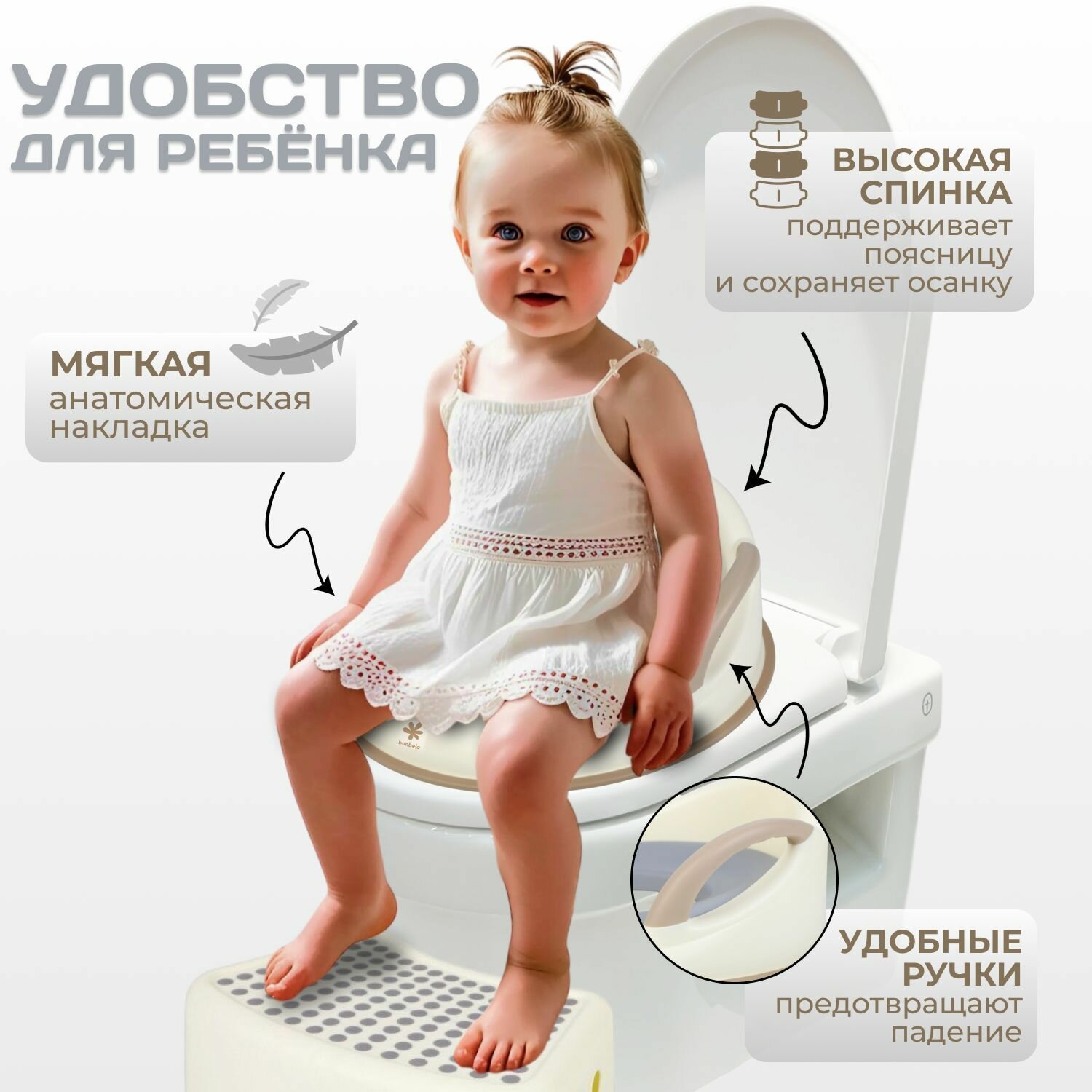 Детское сиденье на унитаз bonbela с ручками и мягкой накладкой, серый/бежевый: сравнение цен, характеристики, фото, актуальное наличие и цены.