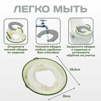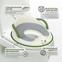 • Надёжная фиксация: удобные ручки по бокам помогают малышу держаться и оставаться в комфортном положении, а универсальная форма сиденья подходит к большинству стандартных унитазов.