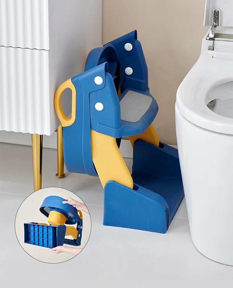 Детское сидение для унитаза с лестницей и мягким сидением ПВХ, сине-желтый цвет: сравнение цен, характеристики, фото, актуальное наличие и цены.