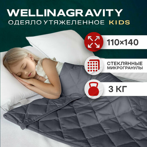 Купить Детское утяжеленное одеяло 3кг 110×140 см WELLINAGRAVITY сенсорное графит с доставкой по всей России.