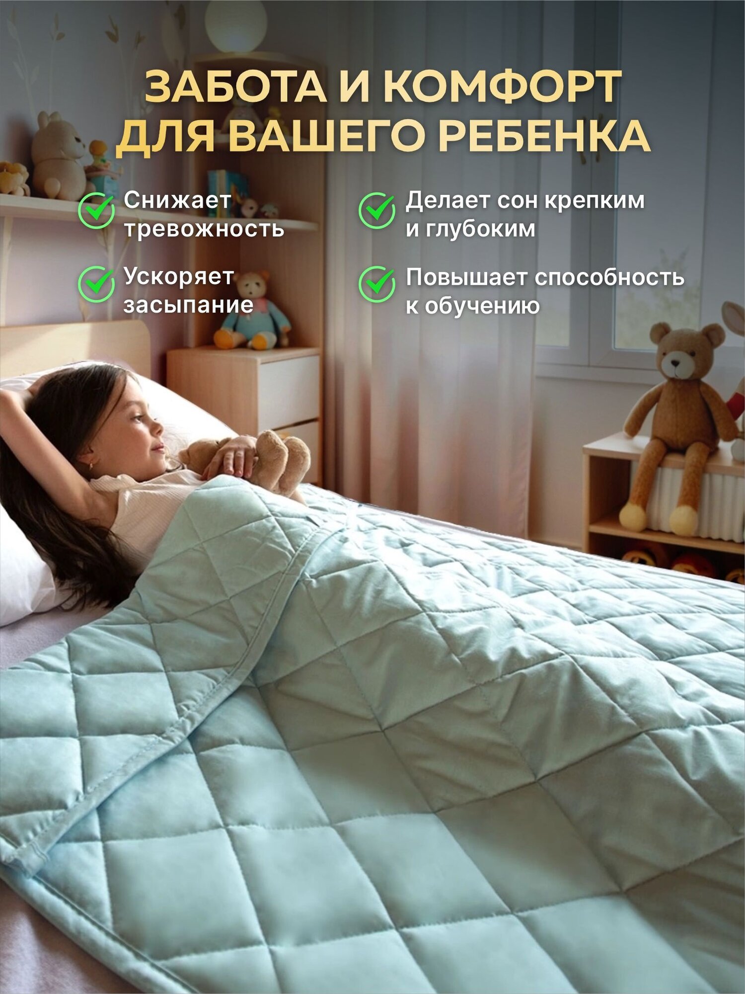 Купить Детское утяжеленное одеяло WELLINAGRAVITY сенсорное 110×140 см мятное 2 кг с доставкой по всей России.