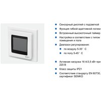встроенный таймер с 15-минутной дискретизацией по времени; настройки термостата могут быть заданы до установки и импортированы в него с использованием кода, сгенерированного в интернете, или скопированы с терморегулятора аналогичной установки