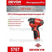 DEVON 5767 Аккумуляторная дрель-шуруповерт 12V (1 АКБ + зарядка) — Компактное решение для дома: сравнение цен, характеристики, фото, актуальное наличие и цены.