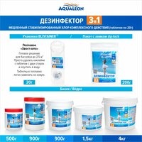 Дезинфектор Aqualeon медленный хлор 3 в 1 в таблетках по 20 гр, 0,9 кг (банка): сравнение цен, характеристики, фото, актуальное наличие и цены.