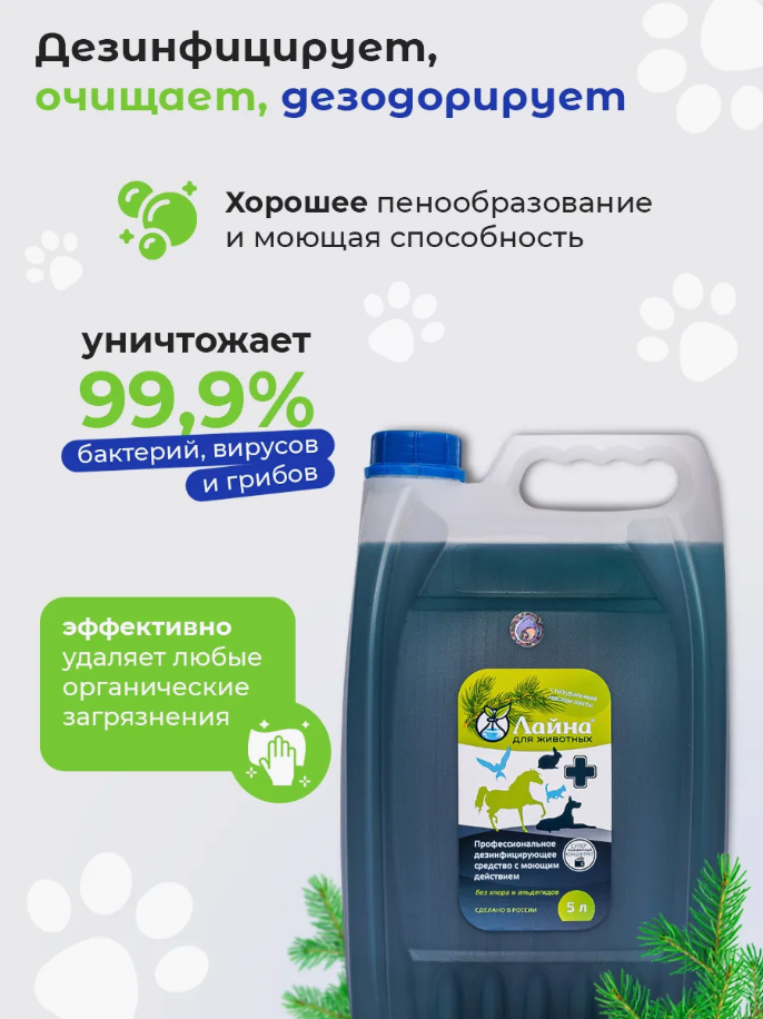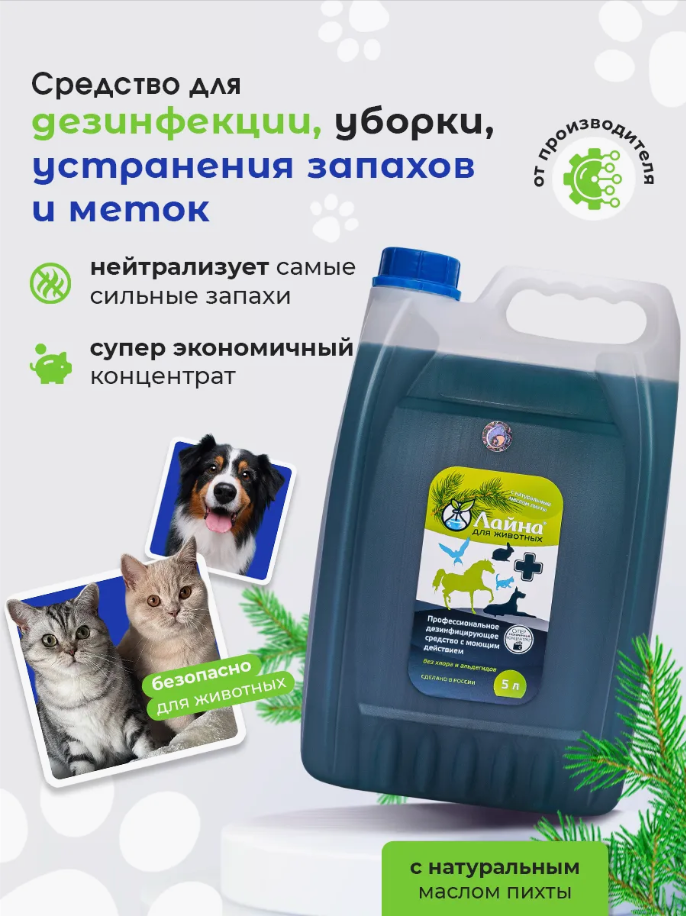 Дезинфицирующие средство Лайна для уборки мест обитания дом. животных 5 л с запахом пихты: сравнение цен, характеристики, фото, актуальное наличие и цены.