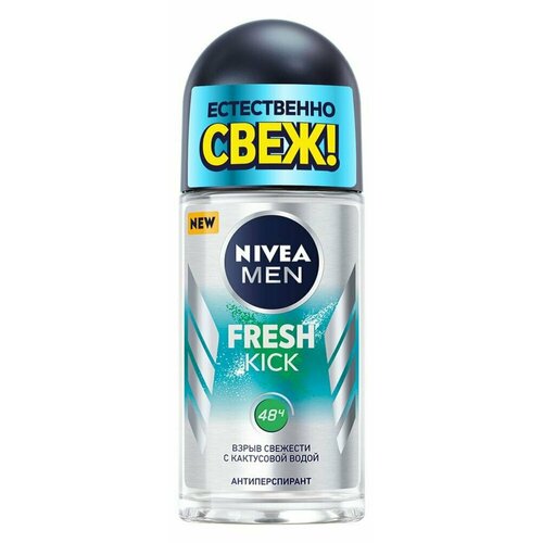 Встречай новинку - антиперспирант Nivea Men Fresh Kick с мощным зарядом свежести и надежной защитой от пота и запаха на протяжении 48 часов. Главным компонентом свежести нового антиперспиранта является кактусовая вода, которая вместе с другими ингредиентами дает ощущение свежести как после душа в жаркий день и обеспечивает деликатный уход без раздражения кожи. Стойкий аромат свежести будет с тобой весь день. Ощути новую свежесть от Nivea Men - получи заряд уверенности. А еще шариковый дезодорант-антиперспирант даёт в 2 раза больше применений, чем спрей! Будь естественно свеж вместе с Nivea MEN Fresh Kick! Применение: наносить ежедневно на сухую чистую кожу подмышек. Дать полностью высохнуть во избежание следов на одежде. Не наносить на раздраженную или поврежденную кожу.