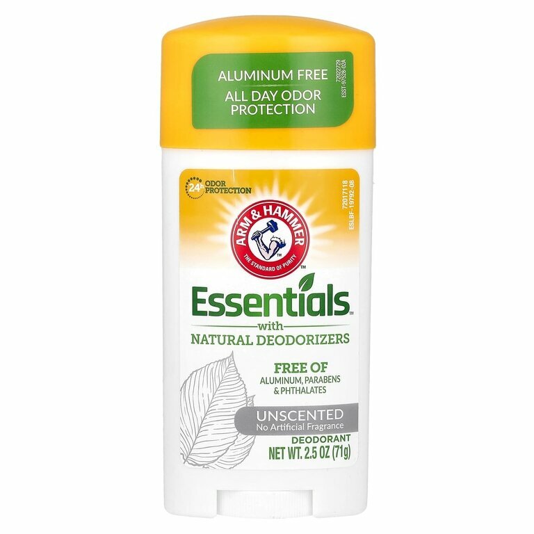 Дезодорант Arm & Hammer Essentials с дезодорирующими компонентами без ароматизаторов 71 гр. Если вы ведете активный образ жизни, вам нужен дезодорант, который поможет вам идти нога в ногу со временем. Боритесь с неприятным запахом с помощью комбинированной пищевой соды и натуральных растительных экстрактов. Независимо от того, что принесет вам ваш день, освежающие и легкие ноты на растительной основе сохранят ваш прохладный аромат. Вы будете чувствовать себя уверенно в любое время и в любом месте. Отсутствие в составе алюминия, фталатов, парабенов или красителей означает, что вы можете постоянно использовать этот дезодорант. Защита от запаха на 24 часа.