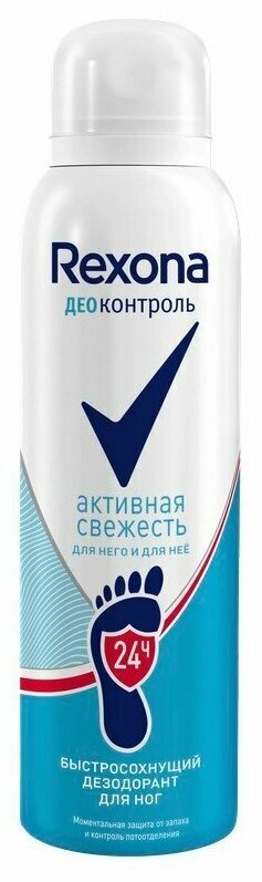 Купить Дезодорант-спрей для ног Rexona, Активная Свежесть, 150 мл с доставкой по всей России. Дезодорант-спрей для ног Rexona, Активная Свежесть, 150 мл: сравнение цен, характеристики, фото, актуальное наличие и цены.