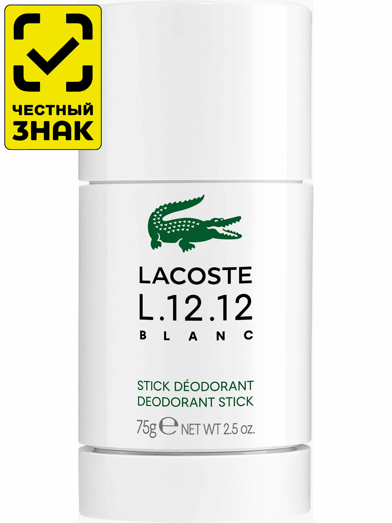 Дезодорант стик мужской Lacoste L.12.12 Blanc, парфюмированный, 24 часа, 75 гр: сравнение цен, характеристики, фото, актуальное наличие и цены.