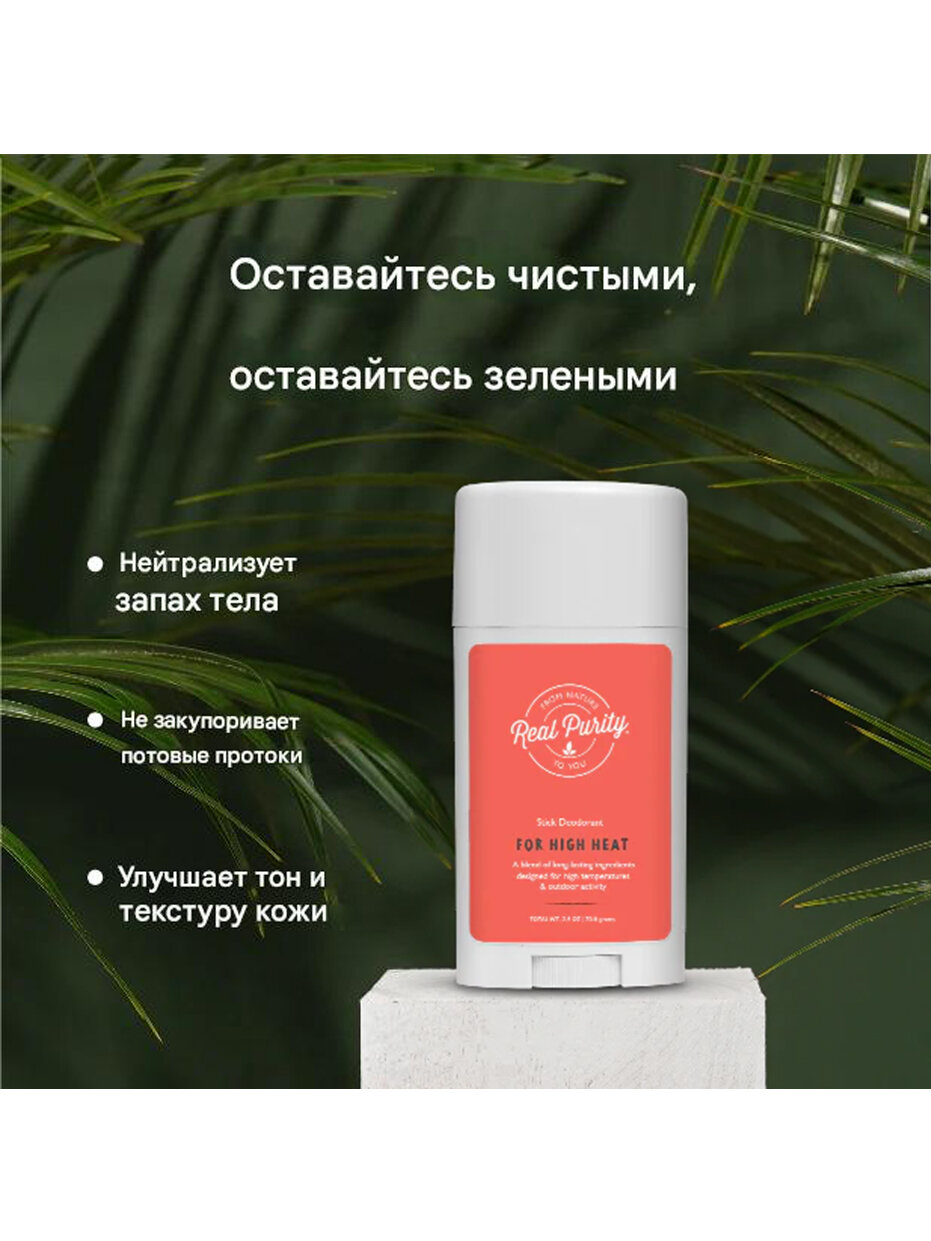 Купить Дезодорант стик Real Purity For High Heat интенсивный, свежий аромат 35,5 гр с доставкой по всей России.