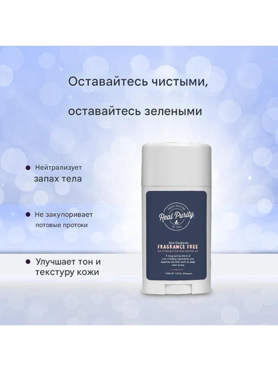 Купить Дезодорант стик Real Purity Fragrance Free без запаха для чувствительной кожи 35,5 гр с доставкой по всей России.