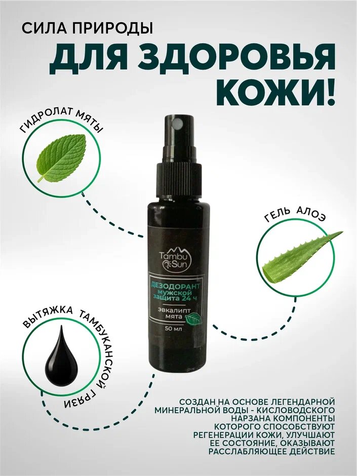 Дезодорант Tambusun «Защита 24», мужской, с мятой, эвкалиптом, 50 мл: сравнение цен, характеристики, фото, актуальное наличие и цены.