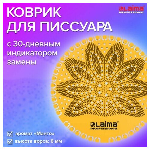Дезодоратор коврик для писсуара LAIMA PROFESSIONAL - это защита от запаха и разбрызгивания до 30 дней и поддержание чистоты в туалетной комнате. Применяется в общественных туалетных комнатах отелей, офисных зданий, аэропортов, больниц, ресторанов.