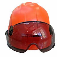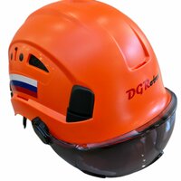 Особенностью данного шлема является наличие защитного козырька с легкой тонировкой, который может быть легко убран на верх каски. Это обеспечивает дополнительную защиту для глаз при работе в различных условиях.