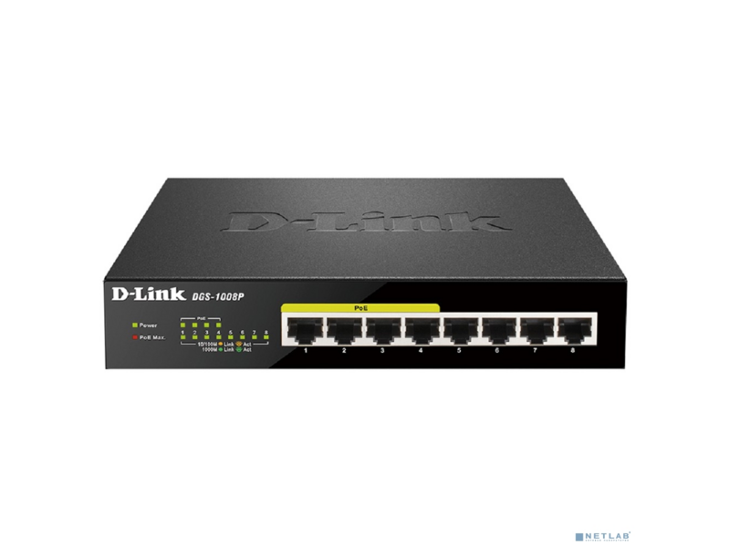 DGS-1008P/E1A неуправляемый коммутатор с 8 портами 10/100/1000Base-T (4 порта PoE 802.3af/at, PoE-бюджет 80 вт): сравнение цен, характеристики, фото, актуальное наличие и цены.