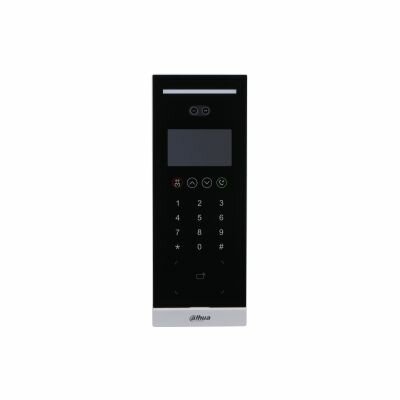 Вызывная панель c распознаванием лиц и сенсорной клавиатурой В устройстве применяется алгоритм распознавания лиц глубокого обучения. Поддерживает открытие через распознавание лица, IC карту, пароль, QR-код и их комбинации. Экран 4.3”, разрешение 800*480; Камера: 2х 1/2.8, 2Mp, 95°, WDR 120 дБ, H.264/H.265. Поддерживает 20000 лиц, 20000 карт; Поддержка TCP/IP, RS485, Wiegand (вход или выход), тевожные входы/выходы 2/2, выход питания DC12V, 500мА. Питание DC12V, PoE. IP65. Материал корпуса: поликарбонат + АБС-пластик.