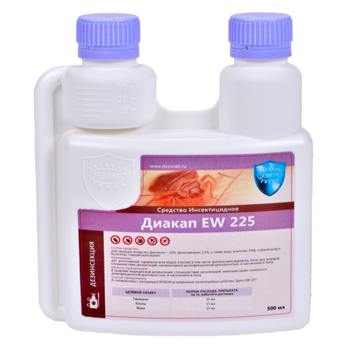 Диакап имеет весьма умеренный запах, раздражающие свойства Дельтаметрина тоже фактически отсутствуют.