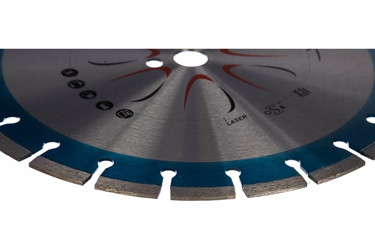 Диаметр, мм: 350 Посадочный диаметр: 25.4 мм Толщина: 3 мм Тип : по железобетону Количество сегментов : 23 Тип реза : сухой (с СОЖ и без) Высота алмазного слоя: 10 мм