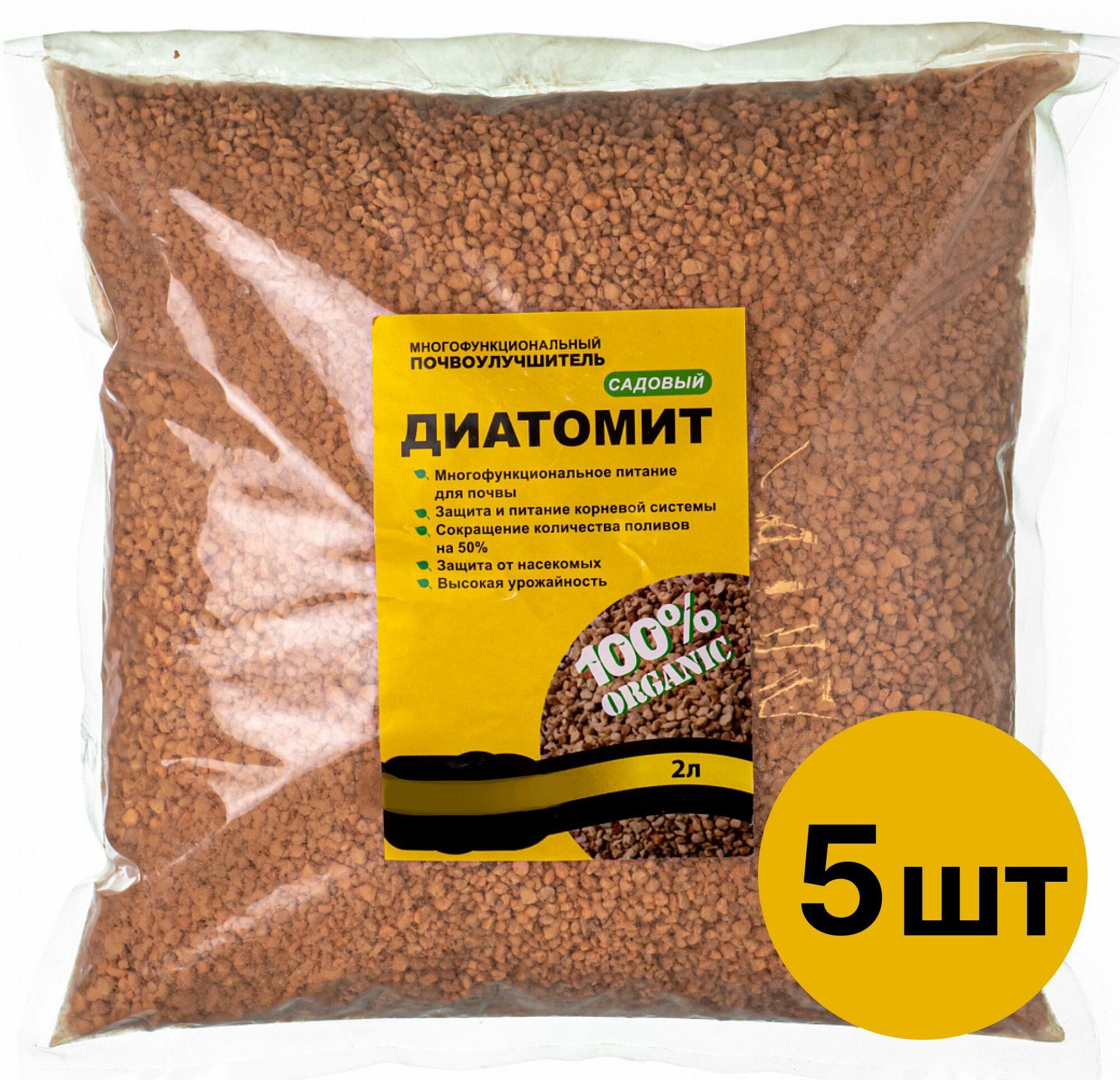 Диатомит, универсальный почвоулучшитель 10 л (комплект 5 шт по 2л)- природный сорбент, поглощает из грунта вредные примеси и лишнюю влагу, борется с вредителями, укрепляет корневую систему растений