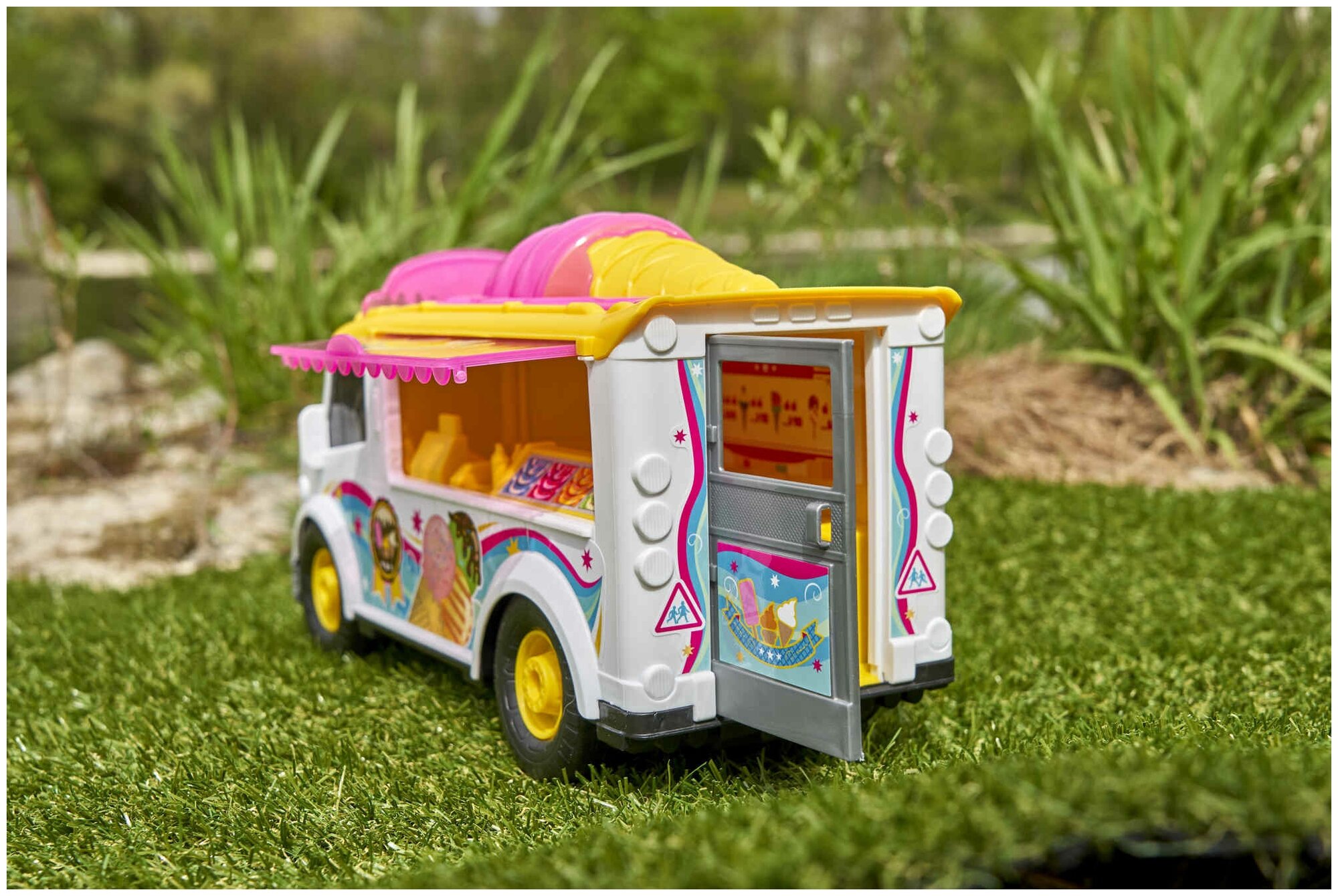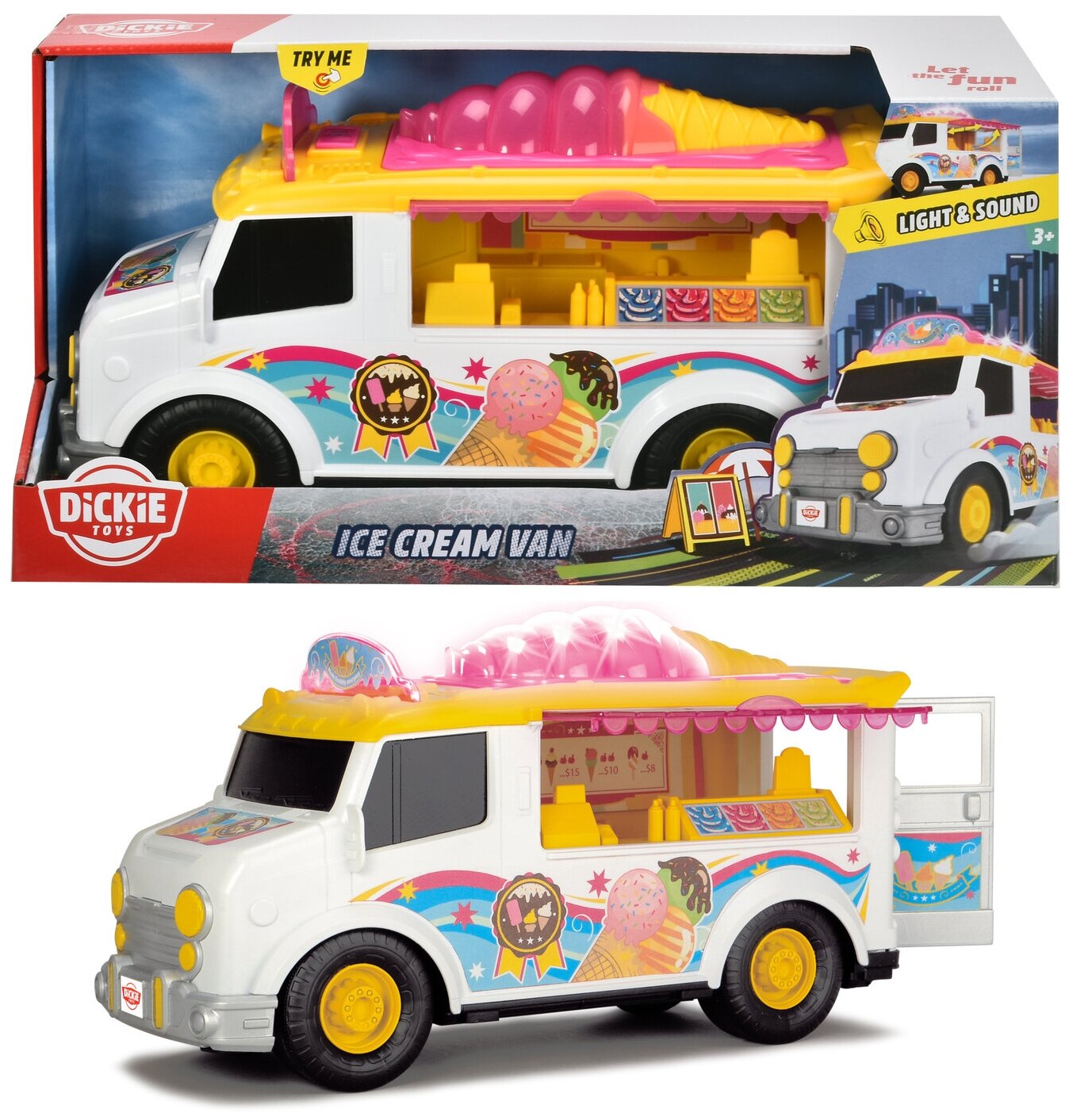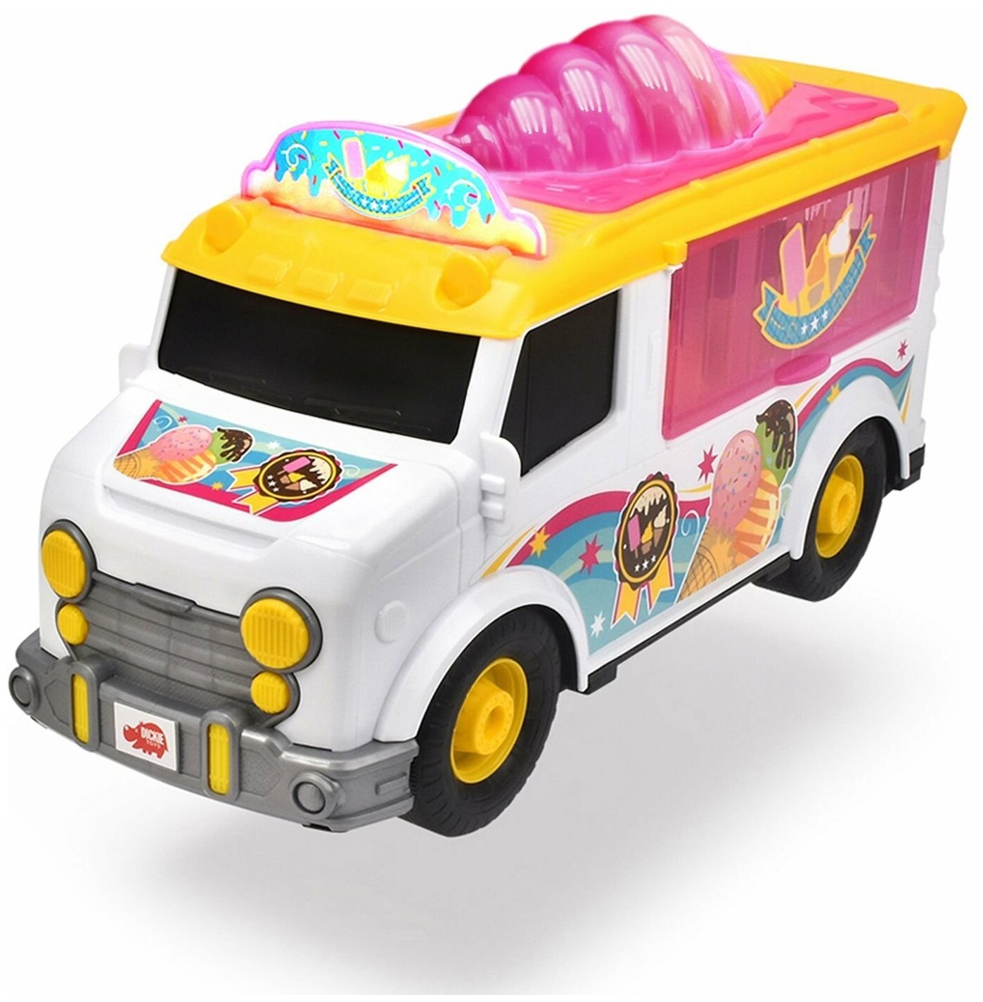 Фургон с мороженым игрушка бренда Dickie toys являются одними из самых популярных товаров в категории машинка для девочки. Машина для девочки - это красочный фургончик с мороженым на свободном ходу со световыми и звуковыми эффектами. Дети и взрослые обожают мороженое, и теперь они могут угостить им своих друзей! Через прозрачную боковую цверцу можно выбрать любимое мороженое, а с помощью кассового аппрата - пробить чек. Привлеки любителей мороженого яркими вывесками и подари радость сладкоежкам! Подробная детализация фургон игрушка идеально подходит для сценариев ролевых игр. Разработанный для детей в возрасте от трех лет и старше, эта машинка фургон для мороженого гарантированно развлечет вашего малыша! Задняя дверь и боковая дверь оснащены механизмом открывания, что дает возможность удобно торговать холодным лакомством. Фургон машинка выполнена в ярком дизайне с сочетанием бело-розового цвета, и длиной 30 см. Детский игровой набор позволит вашему малышу окунуться в мир сладкоежек. Детская машинка, станет идеальным дополнением к играм вашего ребенка. Идеальная машинка детская игрушка для начинающих продавцов мороженого обладает всеми необходимыми функциями, чтобы сделать игровой процесс максимально реалистичным и увлекательным, а световые и звуковые эффекты дополнят игровую реальность. Дизайн машинки для мальчиков исполнен в реалистичном стиле, а благодаря подробной детализации ее интересно рассматривать, знакомясь с отличительными особенностями и расширяя свой кругозор. Машина детская подойдет для игр малышей в песочнице или для развлечений дома. С помощью машинки для девочек игрушечные от компании Дики тойс ребенок сможет ознакомиться с ее игровыми функциями и придумать много новых увлекательных сюжетов для игры. Машинки детские - это отличный подарок Вашему ребенку! Купить другие фургоны машинки и игровой набор для мальчика Вы можете, перейдя в карточку нашего магазина.