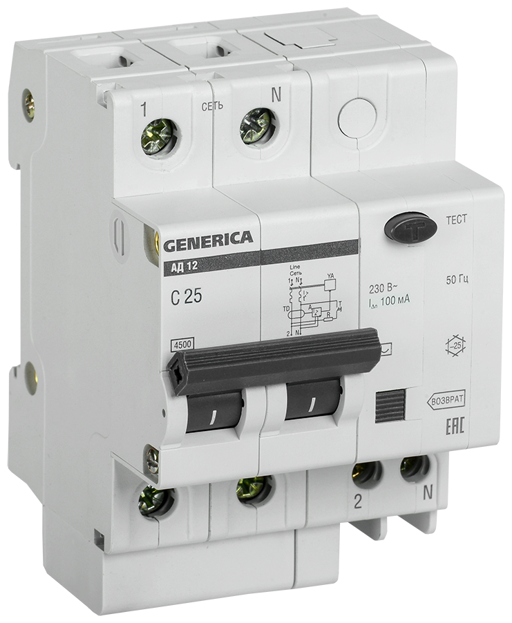 Купить Диф. автомат АД12 2Р 25А 100мА GENERICA, IEK MAD15-2-025-C-100 (1 шт.) с доставкой по всей России. Диф. автомат АД12 2Р 25А 100мА GENERICA, IEK MAD15-2-025-C-100 (1 шт.): сравнение цен, характеристики, фото, актуальное наличие и цены.
