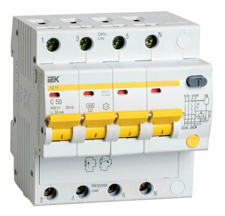 Выключатель автоматический дифференциального тока 4п C 50А 30мА тип AC 4.5кА АД-14 KARAT IEK MAD10-4-050-C-030: сравнение цен, характеристики, фото, актуальное наличие и цены.
