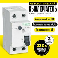 Двухполюсный, автоматический выключатель дифференциального тока City9 Set, номинальным током 20 Ампер, с током утечки 30 мА, двухмодульный, тип тока утечки AC АВДТ применяется в электрических сетях напряжением 230В. Предназначен для защиты сети от перегрузок, людей от поражения электрическим током и токов короткого замыкания. Уставка по току утечки 30 мА обеспечивает гарантированную защиту людей при прямом прикосновении. Кнопка тест обеспечивает проверку работоспособности аппарата. Крепление на DIN-рейку шириной 35 мм.