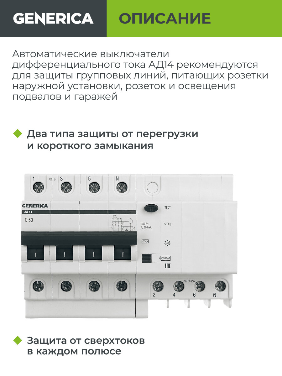 Купить Дифференциальный автомат АД14 4Р 50А 300мА GENERICA с доставкой по всей России. Дифференциальный автомат АД14 4Р 50А 300мА GENERICA: сравнение цен, характеристики, фото, актуальное наличие и цены.