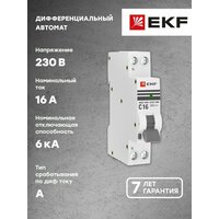 Дифавтомат EKF PROXIMA АВДТ-63М 10А, 16мА, тип А, х-ка C, 1P+N (двухполюсный), электронный, компактный (1 модуль), 6кА