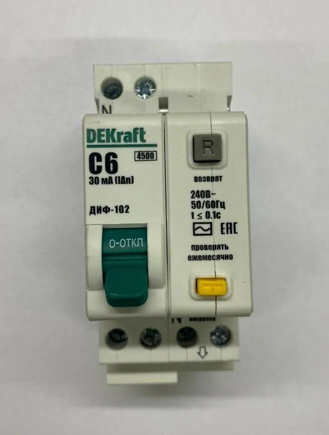 Купить Дифференциальный автомат DEKraft ДИФ-102 электронный C6А 30мА тип АС 1P+N 4,5кА (дифавтомат, АВДТ) 16001DEK с доставкой по всей России. Дифференциальный автомат DEKraft ДИФ-102 электронный C6А 30мА тип АС 1P+N 4,5кА (дифавтомат, АВДТ) 16001DEK: сравнение цен, характеристики, фото, актуальное наличие и цены.