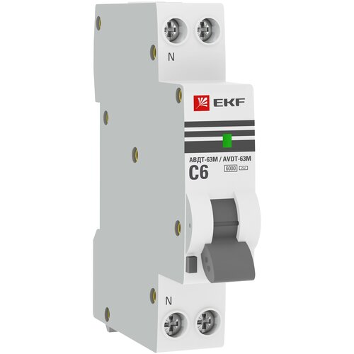 Артикул производителя: DA63M-6-30. Автоматический выключатель дифференциального тока АВДТ-63 EKF PROxima представляет аппарат, сочетающий функции автоматического выключателя с электромеханическим или электронным УЗО. При обнаружении автоматическим выключателем в защищаемом участке сети тока утечки (повреждения) на землю или сверхтока (тока перегрузки иликороткого замыкания) происходит срабатывание устройства, приводящее к отключению защищаемой сети. Возможна коммутация алюминиевым и медным проводником. Автоматический выключатель дифференциального тока малогабаритный АВДТ-63М EKF PROxima представляет аппарат, сочетающий функции автоматического выключателя с электронным УЗО типа АС в компактном корпусе шириной один модуль. При обнаружении автоматическим выключателем на защищаемом участке сети тока утечки (повреждения) на землю или сверхтока (тока перегрузки или короткого замыкания) происходит срабатывание устройства, приводящее к отключению защищаемой сети. Особое отличие дифференциальных автоматических выключателей EKF с электронным УЗО – в наличии блока защиты от перенапряжения. Возможна коммутация алюминиевым и медным проводом.