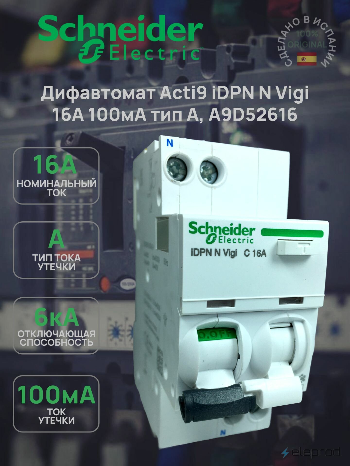 Дифференциальный автомат Schneider Electric Acti9 iDPN N Vigi 2П 16А 100мА тип A, A9D52616: сравнение цен, характеристики, фото, актуальное наличие и цены.