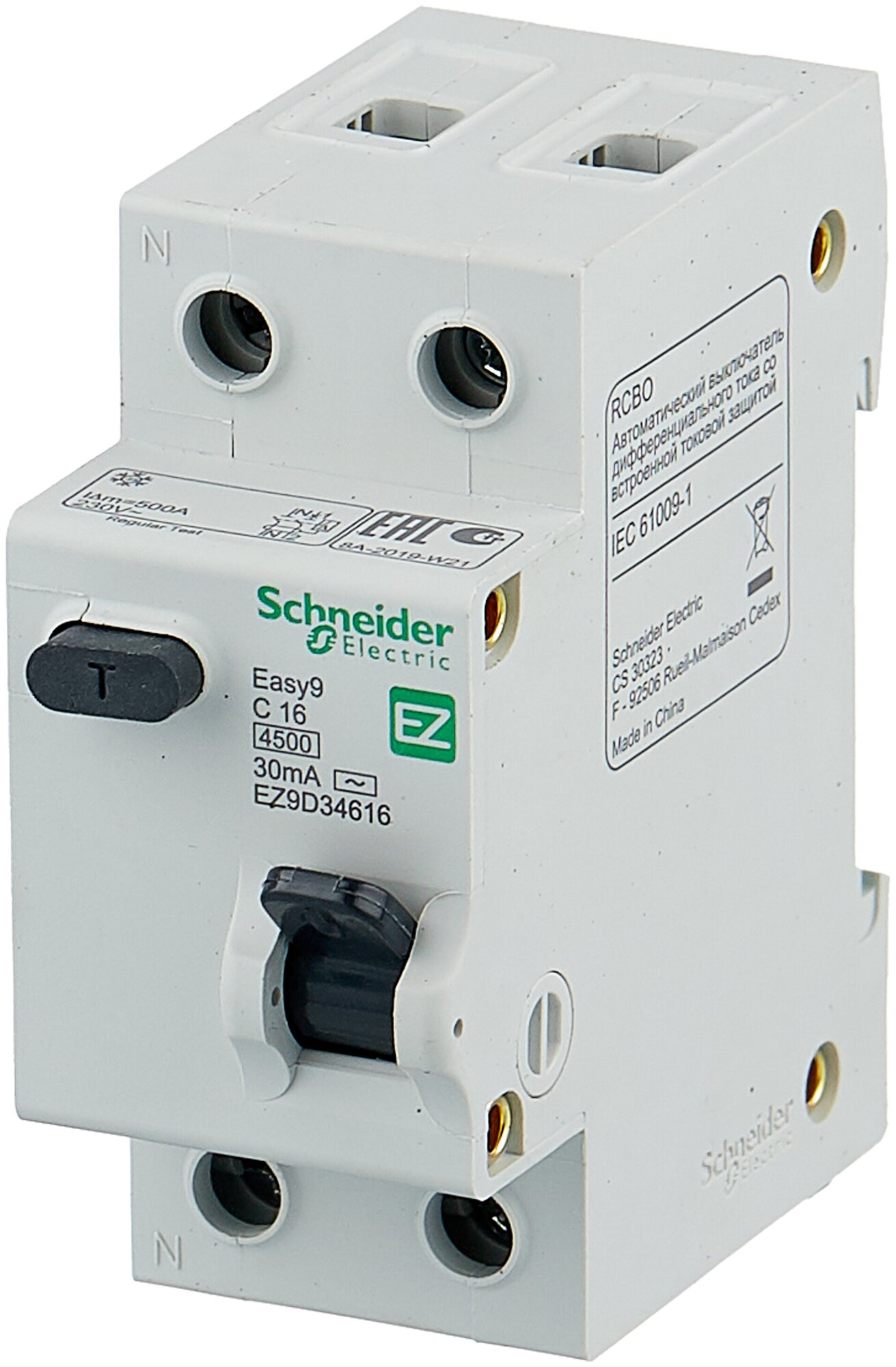 Дифавтомат Schneider Electric 1P+N C16А 30мА тип АС однофазный электронный 4,5кА Easy9 EZ9D34616: сравнение цен, характеристики, фото, актуальное наличие и цены.