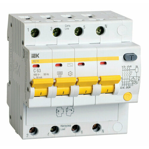Дифференциальный автоматический выключатель (АВДТ) IEK 4-полюсный (4Р) 63А хар. C 30мА тип AC 4.5кА АД14 (4,9 модулей) (комплект 2 шт.): сравнение цен, характеристики, фото, актуальное наличие и цены.