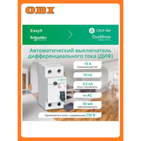 [SE УЗО Easy9] Systeme electric C9D34610 City9 Set Авт. выкл. диф. тока (АВДТ) 1P+N С 10А 4.5kA 30мА Тип-АС 230В