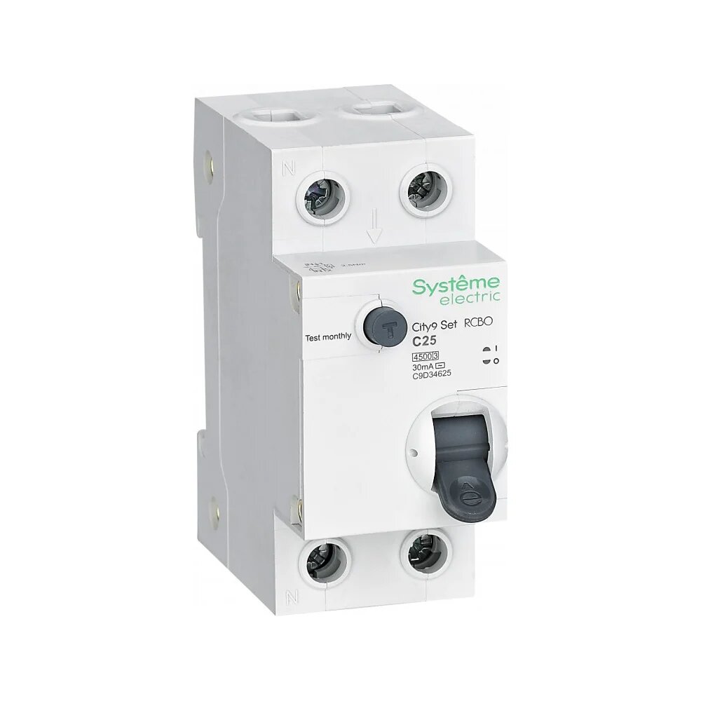 Systeme electric C9D34625 City9 Set Авт. выкл. диф. тока (АВДТ) 1P+N С 25А 4.5kA 30мА Тип-АС 230В
