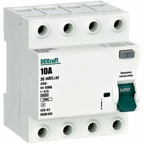 Дифференциальный выключатель четырёхполюсный DEKraft УЗО-03 32А, 6кА, 30мА, тип A: сравнение цен, характеристики, фото, актуальное наличие и цены.