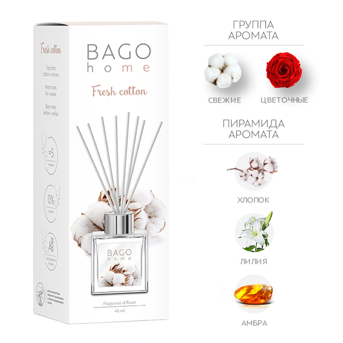 Диффузор аромат «Свежий хлопок» — стеклянная бутылочка емкостью 45 мл с серебристым колпачком-заглушкой, который выполняет декоративную функцию и предотвращает излишнее испарение жидкости. Диффузор используется для устранения неприятных запахов и создания ненавязчивого ароматического фона в помещениях любого назначения.
