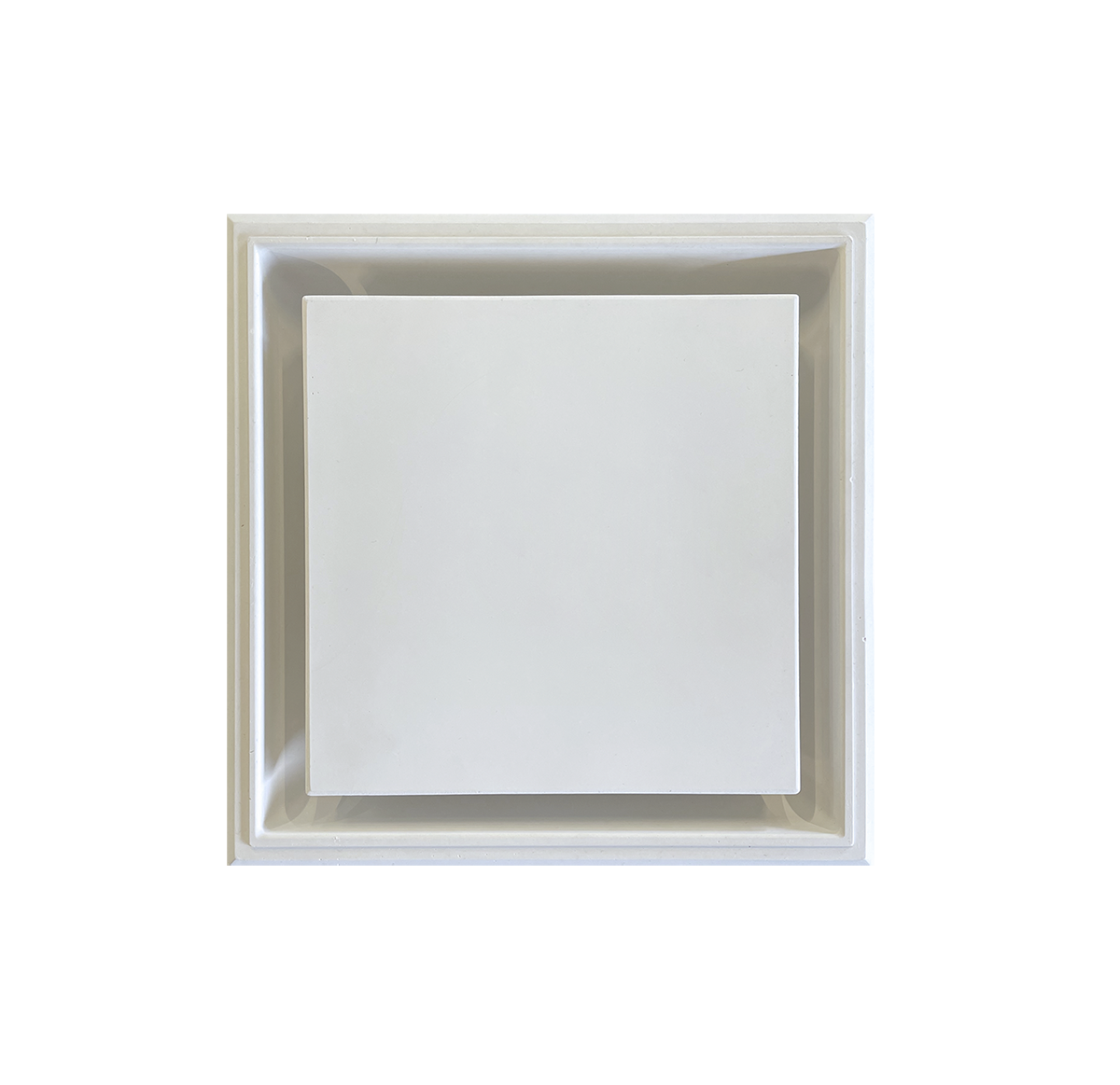 Тип - Настенный, Потолочный Габаритный размер (мм) - 240 х 240 х h100 Размер видимой части (мм) - 210 х 210 Размер крышки (мм) - 180х180 Диффузор с фланцем h (мм) - 100 Высота диффузора - 45 Фланец Ø (мм) - 100 Цвет - Готов к покраске в любой цвет Материал - Гипсополимер, Оцинкованная сталь Открытие крышки - Да Тип монтажа - Скрытый, в ГКЛ Тип вентиляции - Вытяжная, Приточная, Приточно-вытяжная Вес брутто (кг) - 3,6 Гарантийный срок - 12 мес.