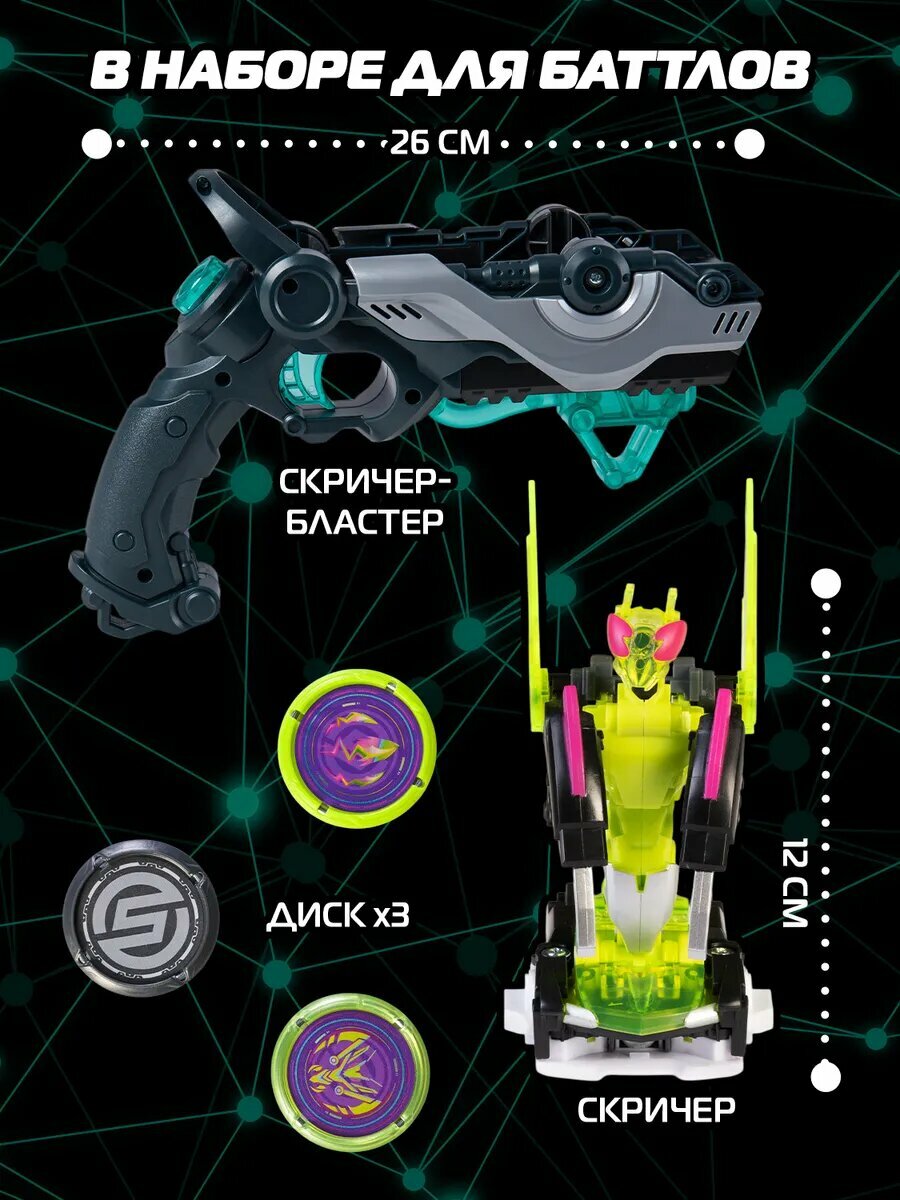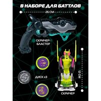 Новинки Диких Скричеров стирают границы между вселенными! Представляем тебе первый Скричер-Бластер – революционный девайс коллекции Кибер из метавселенной Сайберсити, который разрывает границы между мирами! Он не только запускает Скричеров, но и заряжается несколькими дисками для захватывающих атак. Встречай Робота Соник Блейд – Скричера и верного спутника Дамо в метавселенной Сайберсити. Суперсилу Соник Блейду дает ветер. Этот робот-трансформер не просто игрушка – это твой билет в мир эпичных баттлов! Будь готов к любым вызовам с линейкой Кибер Бласт Чардж! Скричер-Бластер имеет 2 режима игры: стреляй дисками и запускай Скричера! Поймав диск, твой Скричер сделает кувырок на 360° и трансформируется! Собери всю новую коллекцию Кибер и устраивай незабываемые Скричер-баттлы! Баттлить не сложно, сложно не баттлить! В набор входит машинка-трансформер Соник Блейд (11х6х9 см), пусковая установка Скричер-Ган (26х15х8 см), 3 энергетических диска, инструкция, наклейки. Игрушка упакована в коробку с окном 25х30х11 см. Играй где угодно – никаких дополнительных приспособлений не нужно! Машинка-трансформер выполнена из высококачественного материала, товар сертифицирован. Эксклюзивный дистрибьютор бренда "Дикие Скричеры" на территории РФ - компания "РОСМЭН".