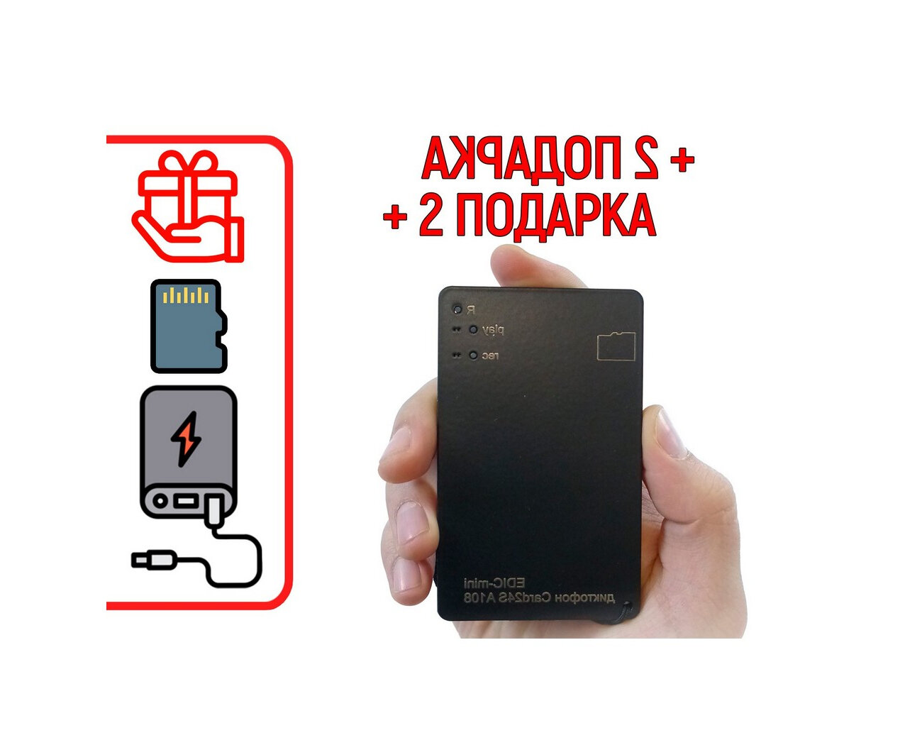 Диктофон карточка Mini-edic A/108 (SDcard) (Z63322IC)+ 2 подарка (Power Bank + SD карта) — работа от встроенного аккумулятора до 600ч, микрофон до 2: сравнение цен, характеристики, фото, актуальное наличие и цены.