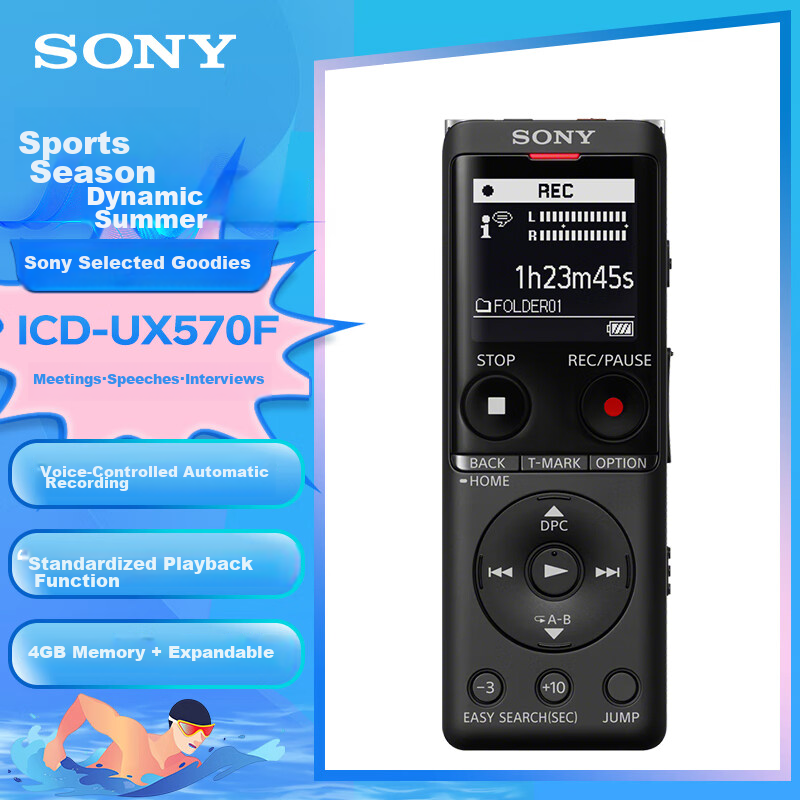 Диктофон Sony ICD-UX570F, 4 ГБ, черный, улучшенная версия с функцией интеллектуального шумоподавления: сравнение цен, характеристики, фото, актуальное наличие и цены.