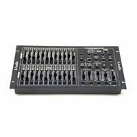 24-канальная консоль DMX. Простота программирования. 4580 программируемых сцен. 48 записываемых программ. Кнопка запуска дым-генератора. протокол USITT DMX-512. MIDI In, Out & Through. 24 независимых фейдера каналов. Стандартная операция 2 сцены (2x12). Контроль времени затухания и скорости. Функция отмены чейза на лету. Активация звуком через встроенный микрофон или линейный вход. Смешивание чейзов. Кнопки Dark & Black out. Питание: 12~20В постоянного тока, 500мА через адаптер (в комплекте). Выход DMX: 3 pin female XLR. MIDI сигнал: 5 pin стандартный интерфейс. Аудио вход: Встроенный микрофон или линейный вход, 100 mV~1Vpp. Предохранитель: F0.5A 250V 5x20mm. Габариты: 482 х 264 х 85мм. Вес: 4,6к.