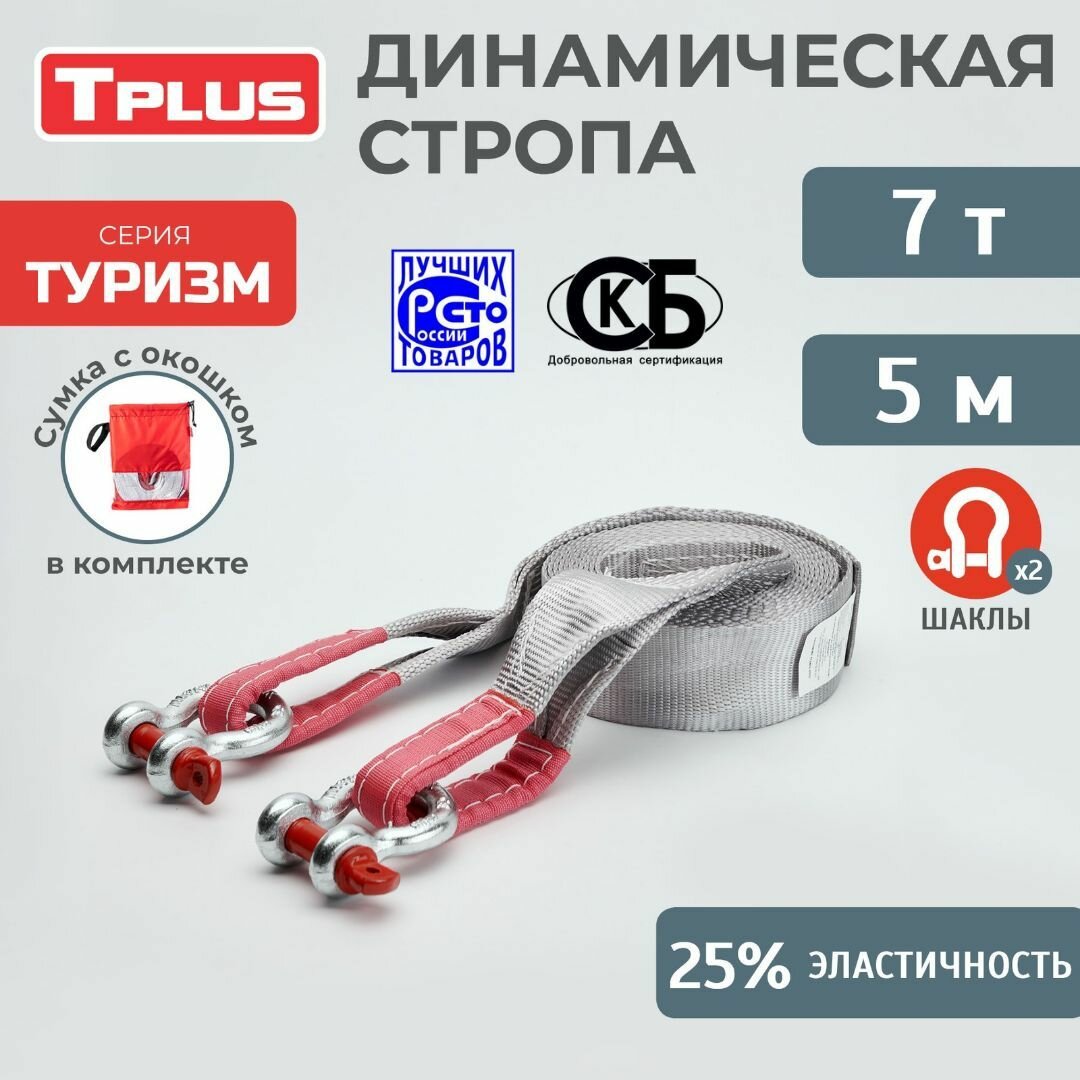 Динамическая стропа 7 т 5 м серия «Туризм» с шаклами + мешок, рывковый трос для автомобиля, Tplus: сравнение цен, характеристики, фото, актуальное наличие и цены.