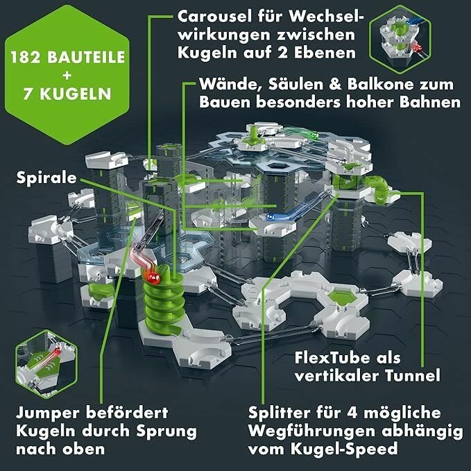 GraviTrax - это гибко расширяемый интерактивный мраморный бег для детей в возрасте от 8 лет и старше. Этот набор можно воспроизводить непосредственно сам по себе, он содержит инструкции и идеи для первого обучения и в любое время может быть индивидуально дополнен другими продуктами.