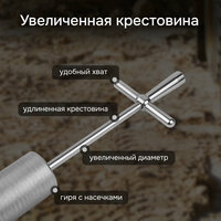 - верхняя ручка продолговатой формы и удлиненная крестовина большего диаметра для максимально удобного хвата;