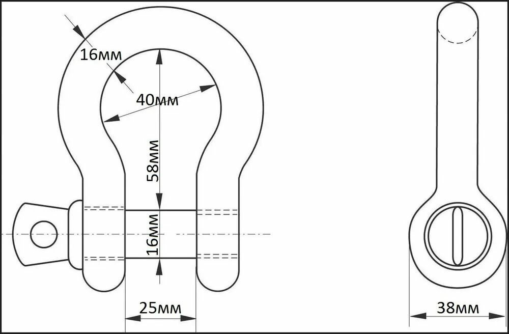 Стропа укомплектована шаклами (скобами) омегаобразными. Рабочая нагрузка шаклов 3,25 тонны, а разрывная нагрузка 13 тонн.