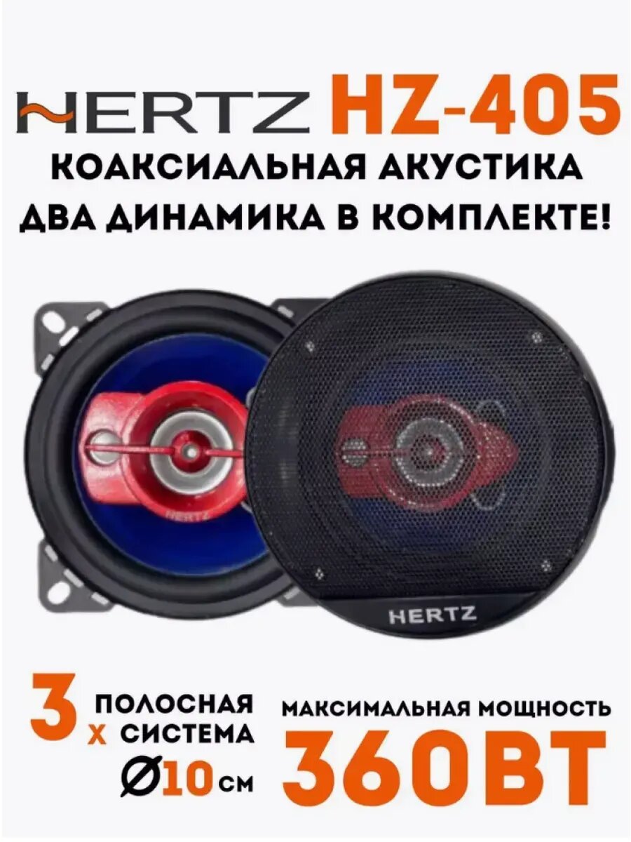 HERTZ HZ 405 360вт - это недорогой комплект динамиков, позволяющий получить большую громкость при минимальных затратах. С помощью данной модели ВАШ автомобиль способен выдать еще большую мощность и обладает большей чувствительностью. 10 см / 3 полосы. Крепкий конус с резиной. Чистый ответ: 36-36 000 кГц. Чувствительность: 92 +- 3 дБ/Вт. м. Импеданс: 4 Ом. Звуковая катушка: 1 "ASV Магнит: 70x32x10 мм. Максимальная мощность: 360вт Номинальная мощность 180 вт