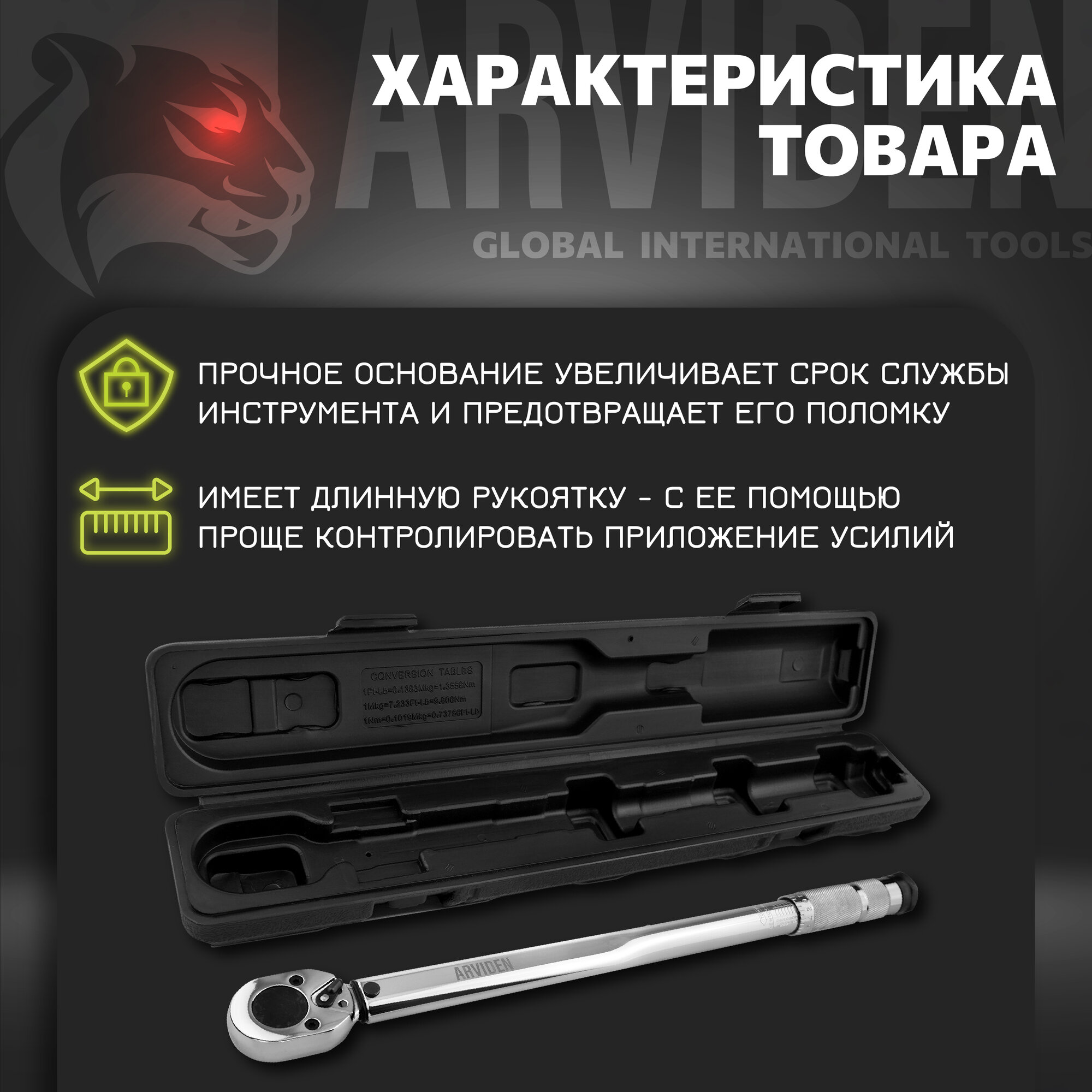 Динамометрический ключ предельный 3/8 ARVIDEN 20-110 Hm, щелчковый с быстросъемом в кейсе: сравнение цен, характеристики, фото, актуальное наличие и цены.
