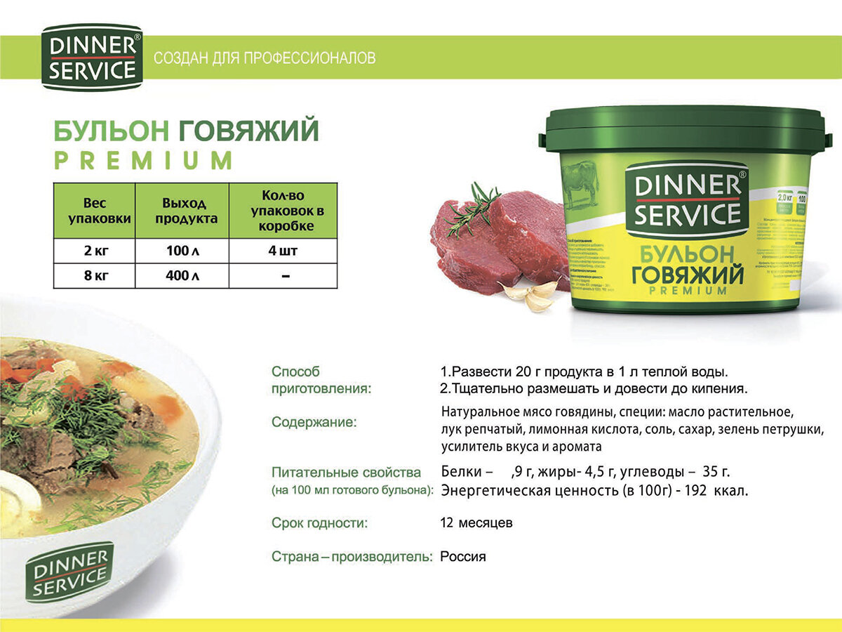 DINNER SERVICE Бульон говяжий, 2 кг: сравнение цен, характеристики, фото, актуальное наличие и цены.